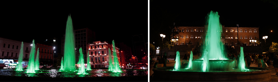 H Πλατεία Συντάγματος & η Ομόνοια «ντύθηκαν» στα πράσινα …