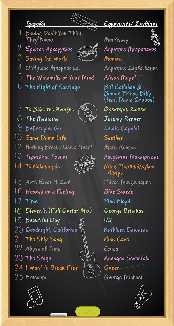 ΥΓ. Ζητώ συγγνώμη για τα ένα-δυο τραγούδια που δεν υπάρχουν στη βιβλιοθήκη του Spotify. Τόσο ψαγμένοι είμαστε….