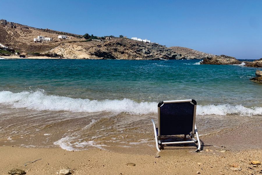 Την αγαπώ γιατί είναι κρυμμένη, απόμακρη από την οχλοβοή του νησιού. Εκεί μόνο ο Θεός μπορεί να σε βρει. Αμμουδερή παραλία, άγριας ομορφιάς, με καταπράσινα, κρυστάλλινα νερά. Τα πρωινά του Αυγούστου, όταν όλοι ακόμη κοιμούνται, φορτώνομαι το καρεκλάκι μου και πηγαίνω στο δικό μου επίγειο παράδεισο. Το κύμα της παφλάζει ευεργετικά, φιλτράρει και καθαρίζει τις σκέψεις από όλα τα τοξικά ενός κουραστικού χρόνου.