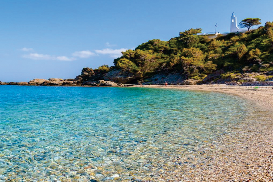 Η παραλία, πέρα από την ομορφιά του φυσικού τοπίου, έχει κρυστάλλινα, καθαρά νερά, κυρίως χαλίκι αλλά και το ωραιότερο ηλιοβασίλεμα…